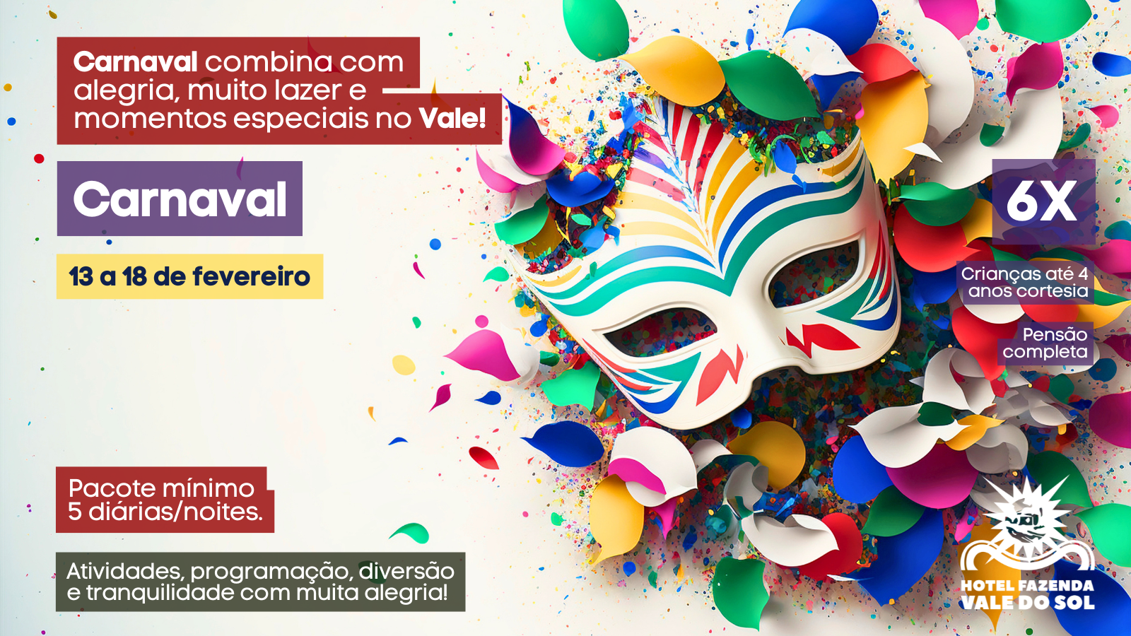 Para garantir a melhor experiência e a segurança de todos, informamos que qualquer atividade ou item da programação, pode ser cancelada, alterada ou reprogramada para outro dia sem prévio aviso. Essas mudanças ocorrem exclusivamente por motivo de condições climáticas adversas ou situações de força maior, priorizando sempre o seu conforto e bem-estar. Agradecemos a compreensão e garantimos que nossa equipe fará o máximo para oferecer alternativas de lazer que mantenham a diversão e a alegria durante sua estadia no Vale.